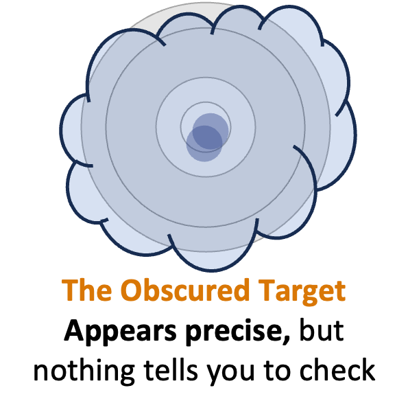 Think of it this way. The four targets all assume you can walk up to the bullseye and look. That’s the prerequisite. If you can see where the shots landed, you can diagnose accuracy, precision, bias, whatever. The obscured target breaks that prerequisite. It’s not telling you something new about the instrument’s performance. It’s telling you that you can’t evaluate the instrument’s performance in the first place.