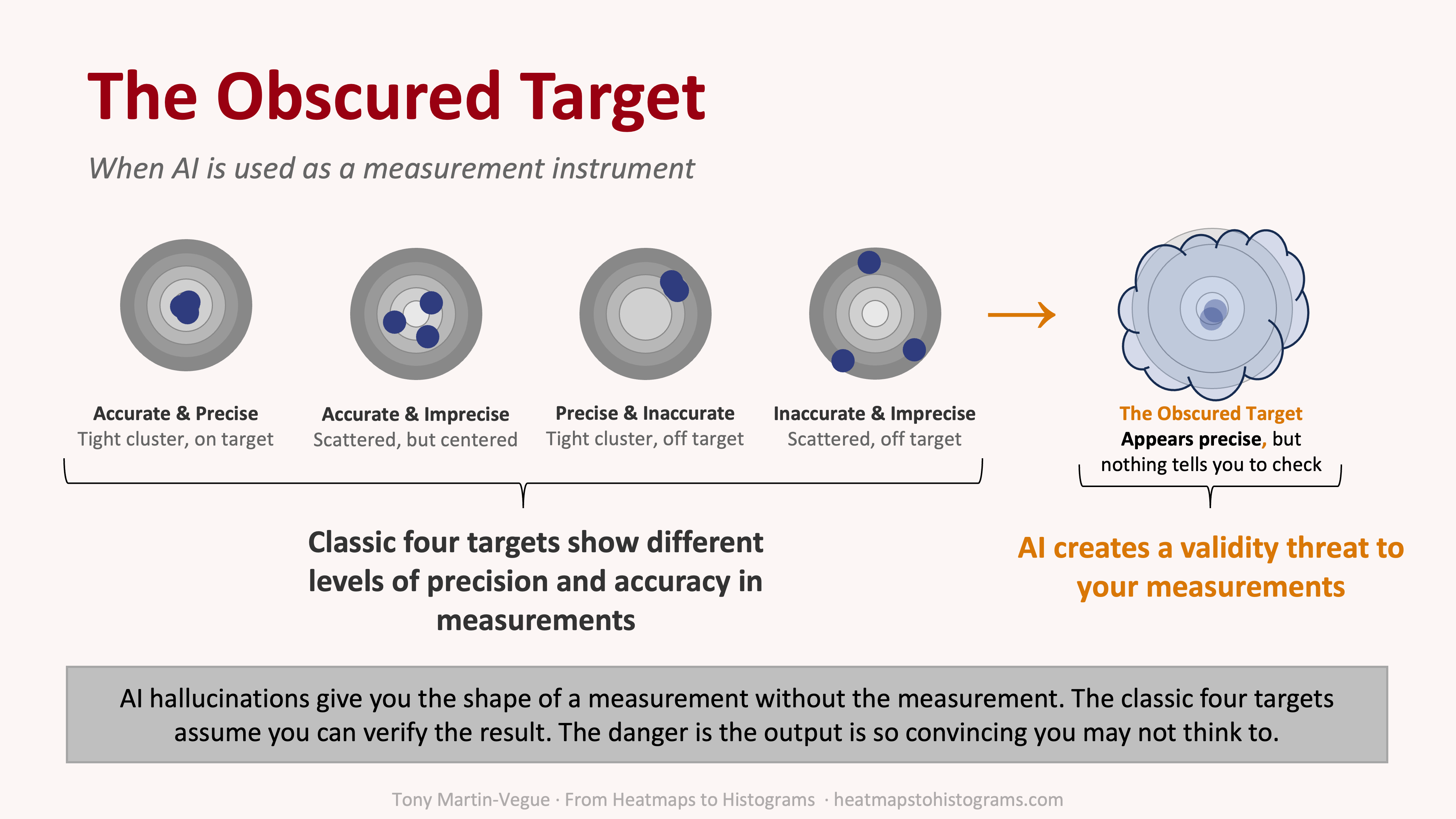 The classic four targets assume observability. We can validate results and compare what the instrument reported to what happened. AI breaks that feedback loop by giving you high apparent precision with no built-in signal that verification is needed.