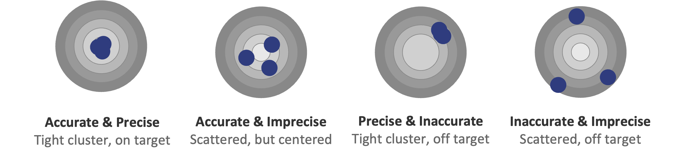 That experience sent me back to something I’d been teaching for years without fully appreciating its implications. AI introduces a new dimension into how we think about the accuracy and precision of our measurements.