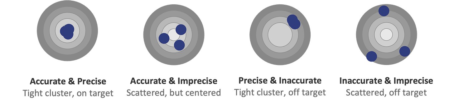 If you’ve spent any time studying metrology, the science of measurement, or any field that draws from it, like decision science, risk quantification, and many others, you’ve probably seen the four targets.
